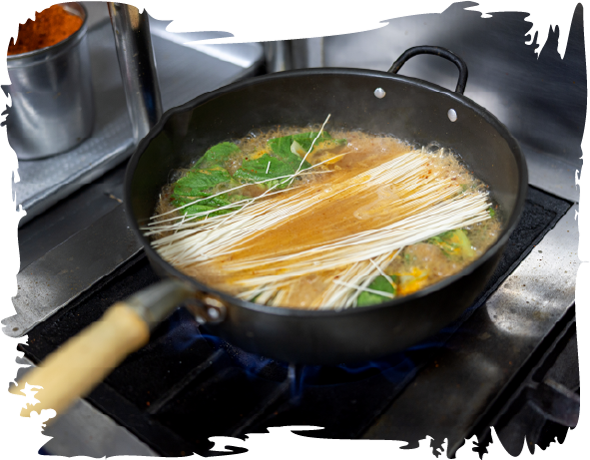 어탕에 밑간한 채소를 넣고 한소끔 끓여 낸 후 국수를 넣는다.