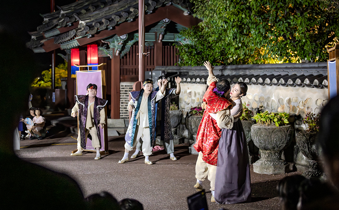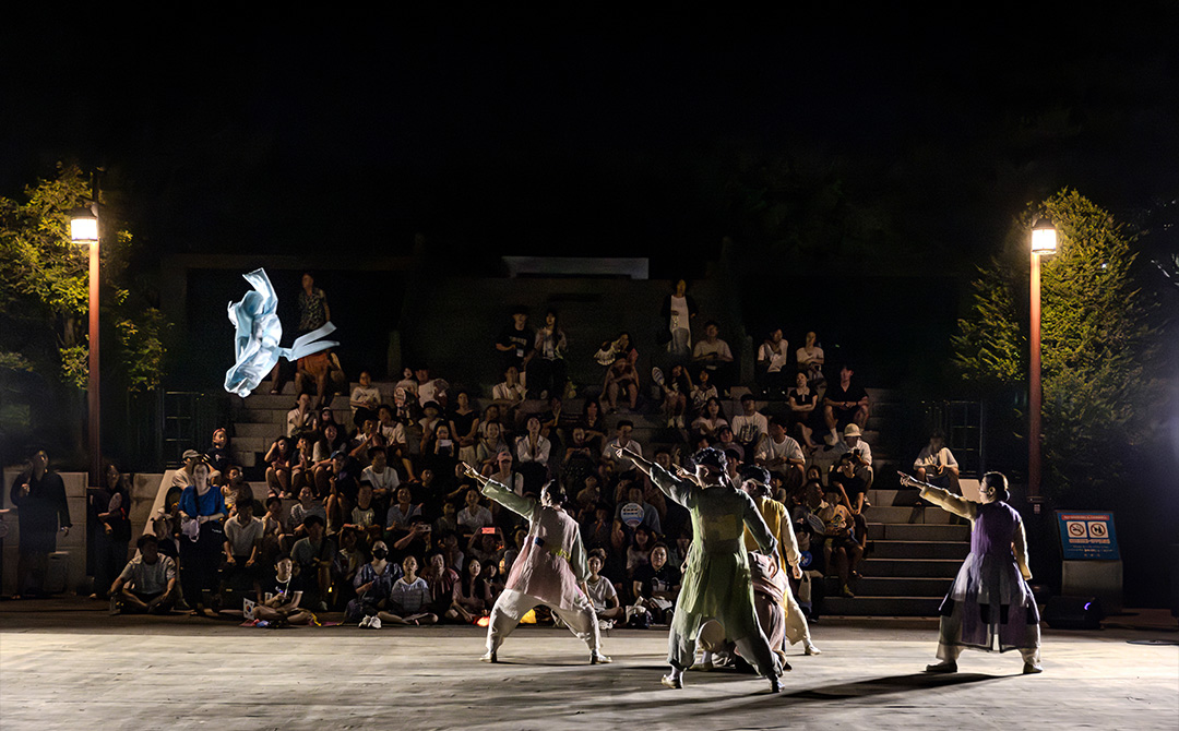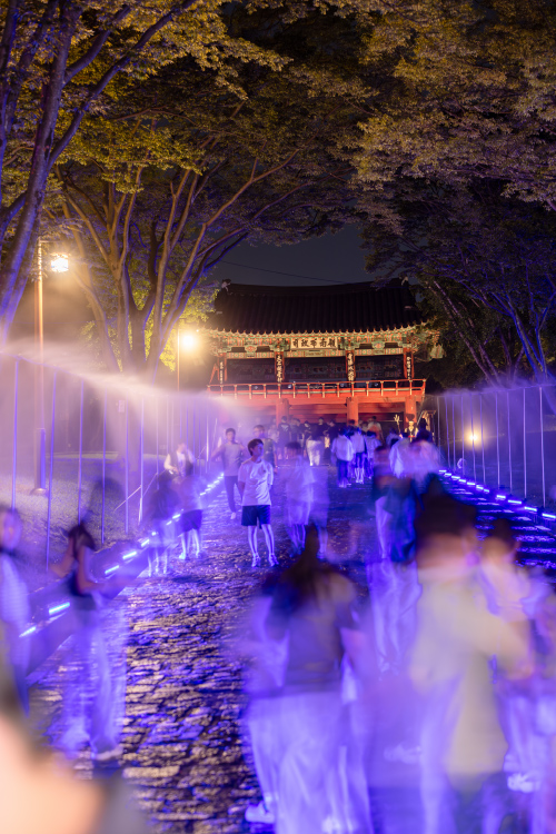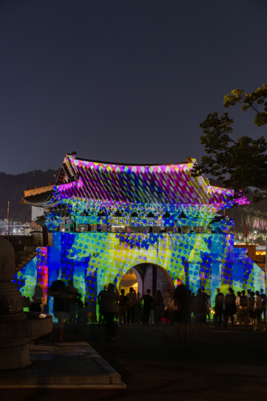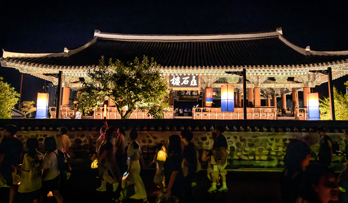 영남포정사 아래에서는 미래 세대가 북소리를 울리면 과거 세대는 빛으로 화답하는 인터랙티브 프로그램이 아늑한 분위기를 자아낸다.