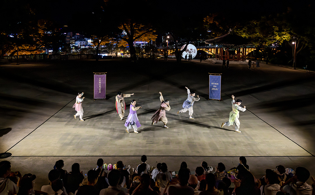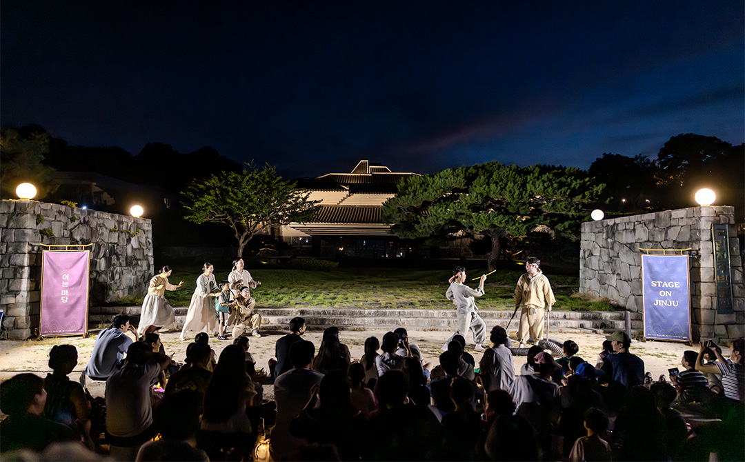 '스테이지 온 JINJU'는 참가자들이 호롱불을 손에 들고 진주성을 걸으며 공연을 관람하는 9월 21일까지 진행되는 공연형 도보투어 프로그램으로, 이 투어에 참가하는 동안이나마 시간 여행자가 된 듯한 특별한 경험을 할 수 있다.