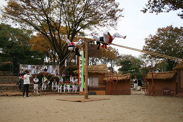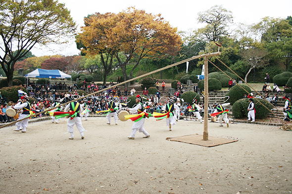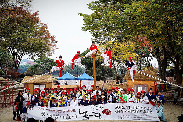 그런 점에서 저희는 경상남도 무형유산 지정을 위해 노력하고 있습니다. 무형유산으로 지정되면 전수관을 마련해 안정적인 연습 공간을 확보할 수 있고, 전수지정학교 등을 통해 초등학생 때부터 솟대타기 같은 기예를 배울 수 있는 기회도 넓어질 것입니다.