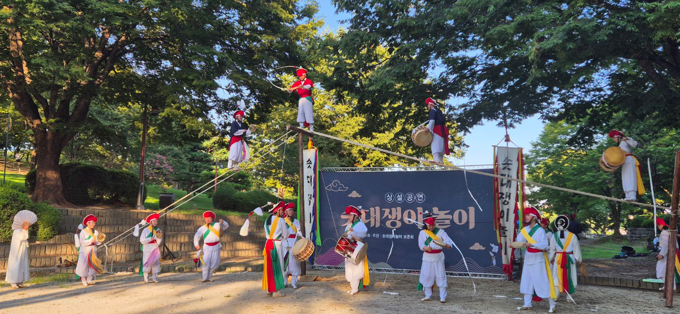 솟대타기와 쌍줄백이는 오랫동안 기록으로만 전해져 오던 재주였지만, 복원 과정을 통해 약 80여 년 만에 다시 우리 앞에 나타난 전통 기예입니다. 복원 자체도 쉽지 않았지만 지금 전국에서 전통성을 갖춘 솟대타기와 쌍줄백이를 선보일 수 있다는 점에서 자부심을 느낍니다.
