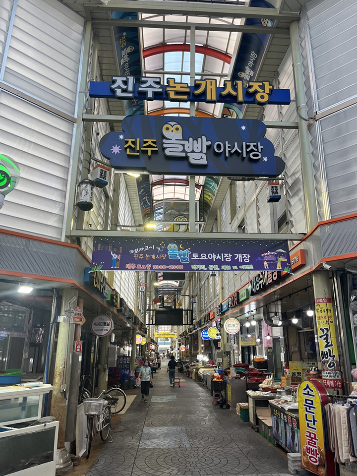 사실 진주시는 10년 전 방문했던 기억이 있어서 그렇게 낯설지 않았어요. 그 당시 진주남강유등축제를 보려고 전국 각지에서 방문한 인파로 인산인해였던 기억이 인상 깊었어요. 요즘에는 LED를 활용한 다양한 미디어 쇼를 연출하지만, 당시만 해도 우리 전통의 공예를 활용한 ‘유등’을 소재로 한 ‘빛의 향연’이었기에 ‘지역 문화의 특성화 요소는 바로 ‘이것’이다’라는 깊은 인상을 받았어요. 그리고 올해는 한 달동안 여행하면서 진주시가 다시 되살려야 하는 곳은, 한화 갤러리를 기축으로 한 중앙시장 및 인근 주변 구도심권이라는 걸 느꼈죠. 지역에서 적어도 몇 세대 이상 살아오신 정주민이 계신 곳이 그렇게 허무하게 비워진 채로 놓아두는 것은 아니라고 생각해요. 그것은 지역 문화정체성이 사라지는 것과 같다고 봐요. ‘노인 한 명이 생을 다하면 큰 기억의 저장고(도서관)가 사라지는 것과 같다’는 아프리카 속담처럼 지역에 활력을 불어넣던 한 지역이 우리의 기억에서 점차 멀어지는 것은 지역 정체성에 있어서 중요한 요소 하나가 사라지는 거예요. 특히 아주 매력적인 노포집이 많아서 스토리텔링만 잘한다면 진주시 핫플레이스로 다시 생동감을 회복할 수 있다는 판단이 들었습니다.