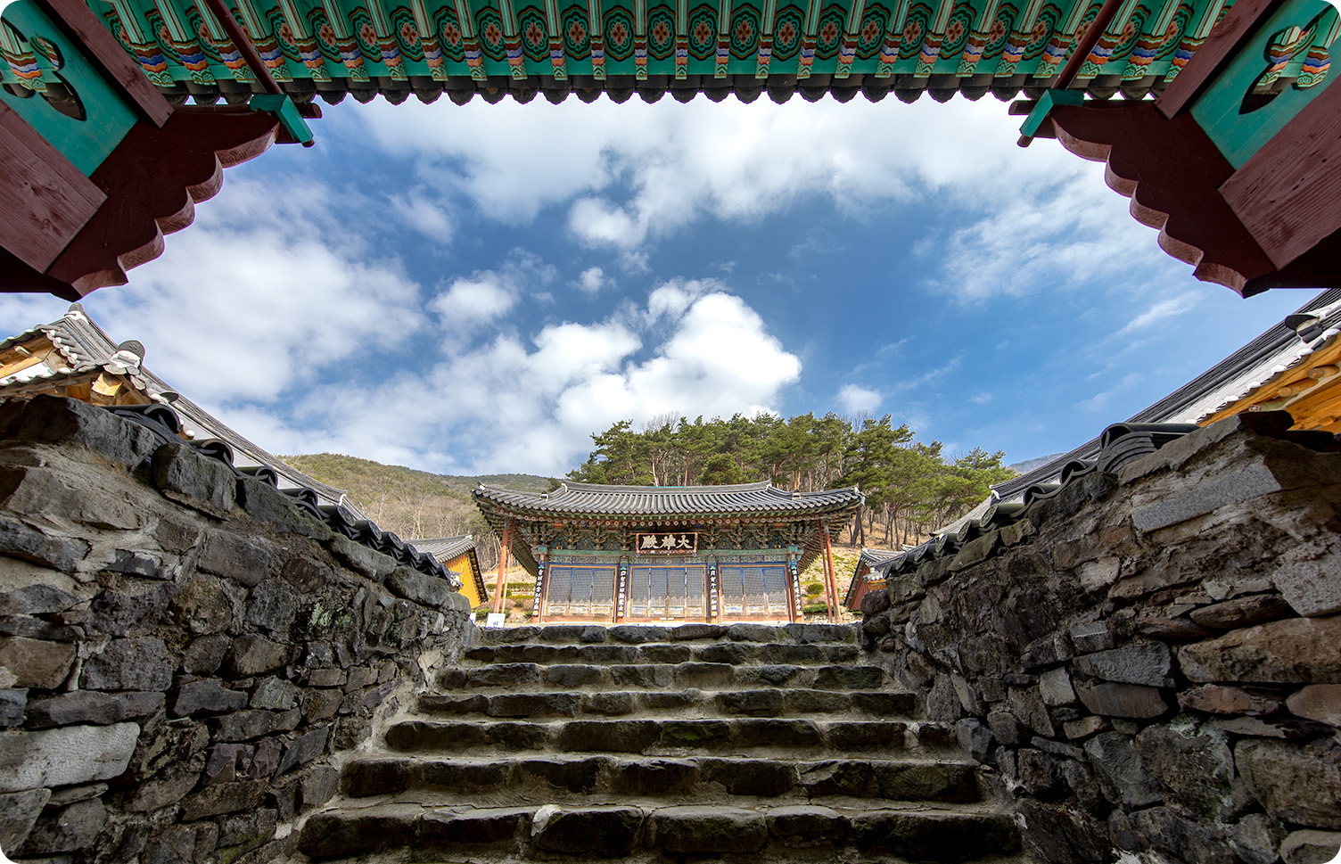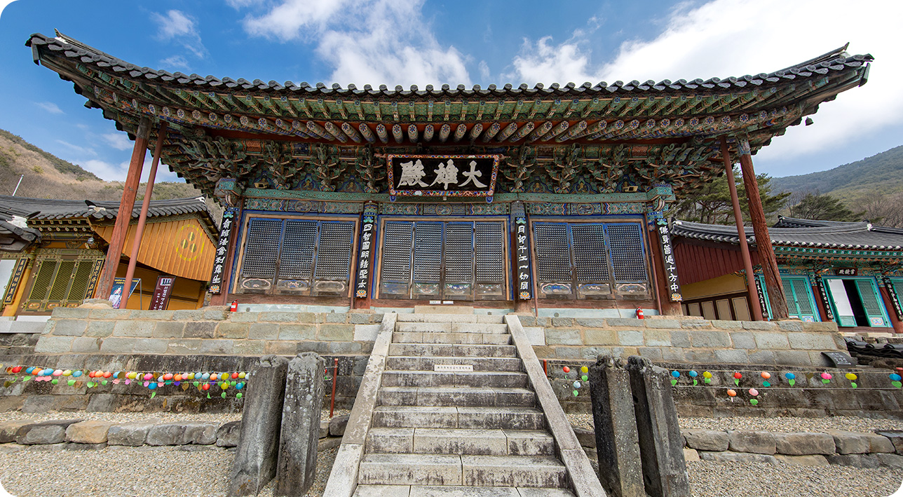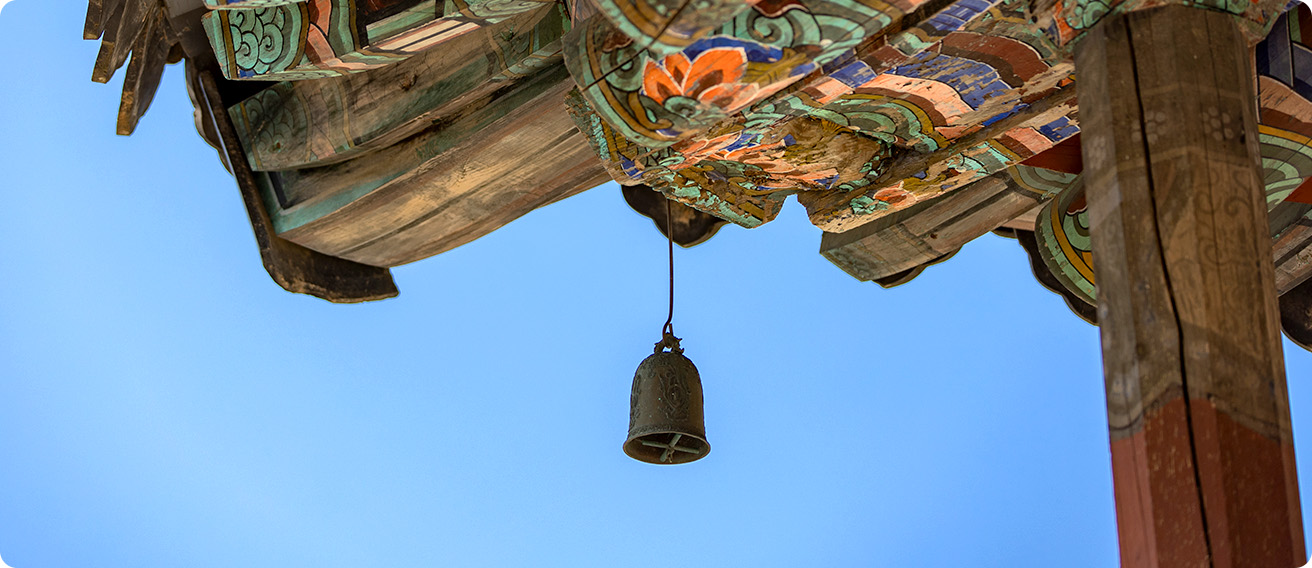 날렵한 지붕 아래 화려한 비단 무늬 단청은 세월이 흘러 바랬지만 여전히 굳건하다.