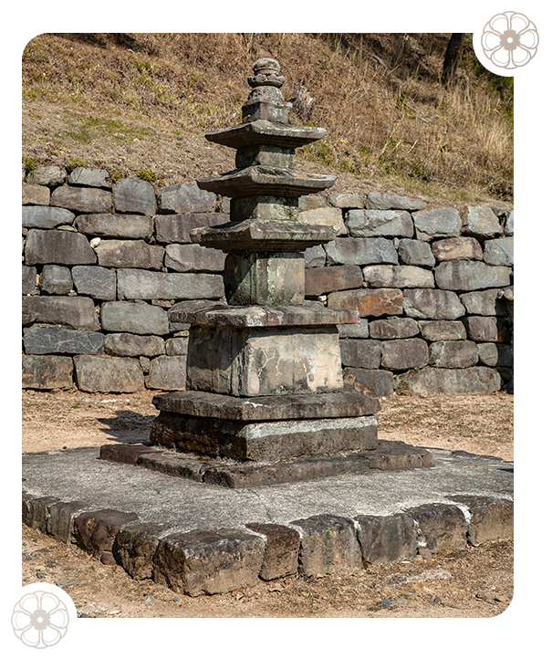 긴 시간 동안 자리를 지킨 월아산 아래 홀로 선 삼층석탑 앞으로 청곡사의 세월이 밀려든다.