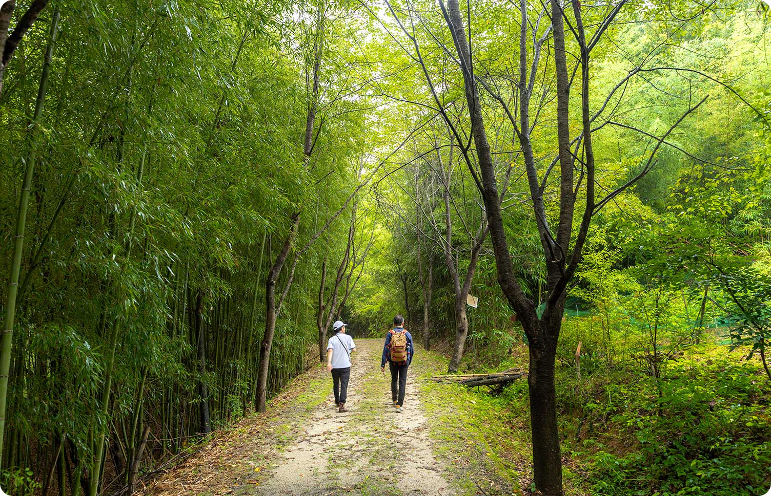 마치 두 팔을 벌리고 반기는 것처럼 길 양쪽에 쭉 뻗은 대숲 사이로 난 산책로가 목가적인 풍경을 만들어 낸다.