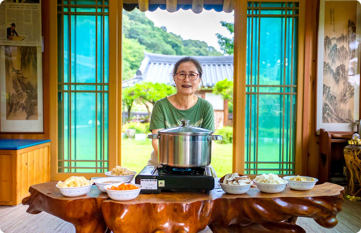 찜국 시연을 위해 김이 펄펄 끓어오르는 냄비 앞에서 이정령 여사는 흐뭇한 표정으로 말을 이어 나갔다.