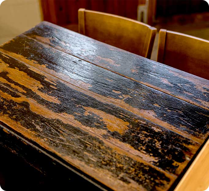 100여 년 이상의 역사가 켜켜이 쌓인 천황식당의 내부 탁자에는 지난 세월의 숨결이 느껴진다.