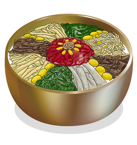 진주 육회비빔밥은 동황색 놋그릇에 하얀 쌀밥을 담아 제철 나물 다섯 가지를 올린다. 이때 나물이 최대한 부드러워지도록 오랫동안 치대어 나물을 무쳐야 한다.