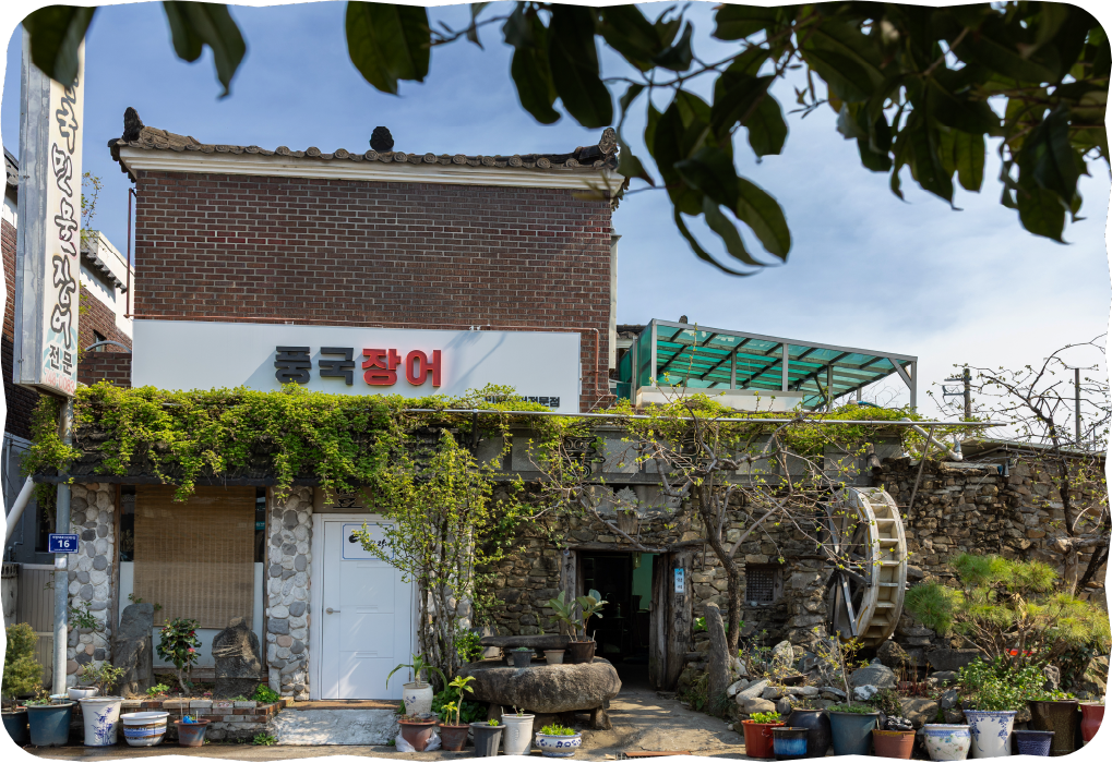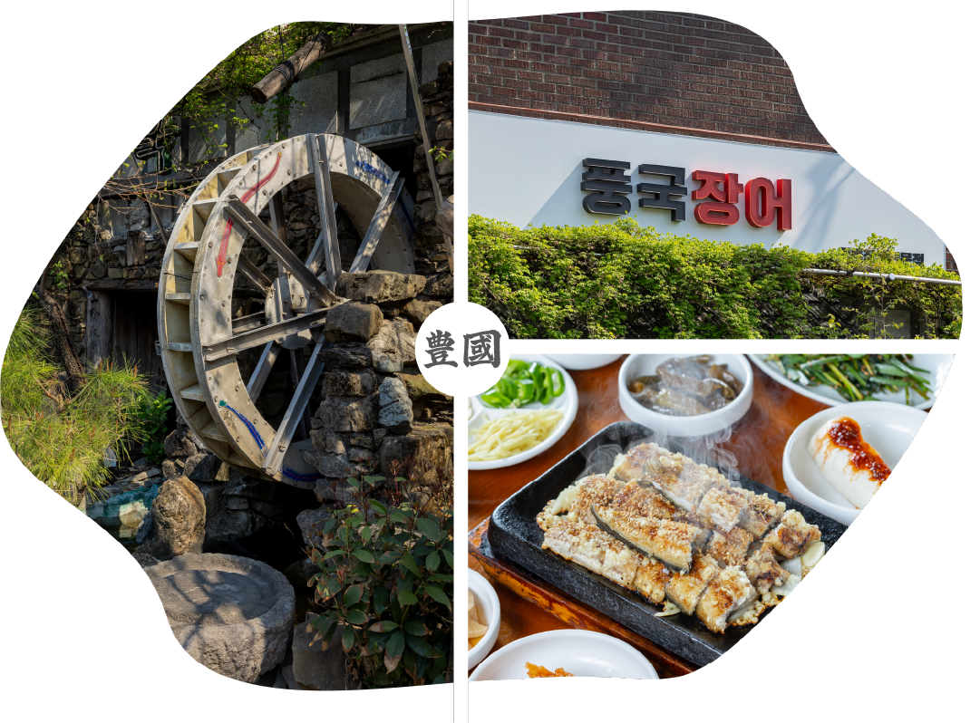 진주성에서 인사동 골목으로 접어들면, 민물장어가 곱게 그려진 물레방아가 돌아가는 ‘풍국(豊國)’ 간판이 보인다.